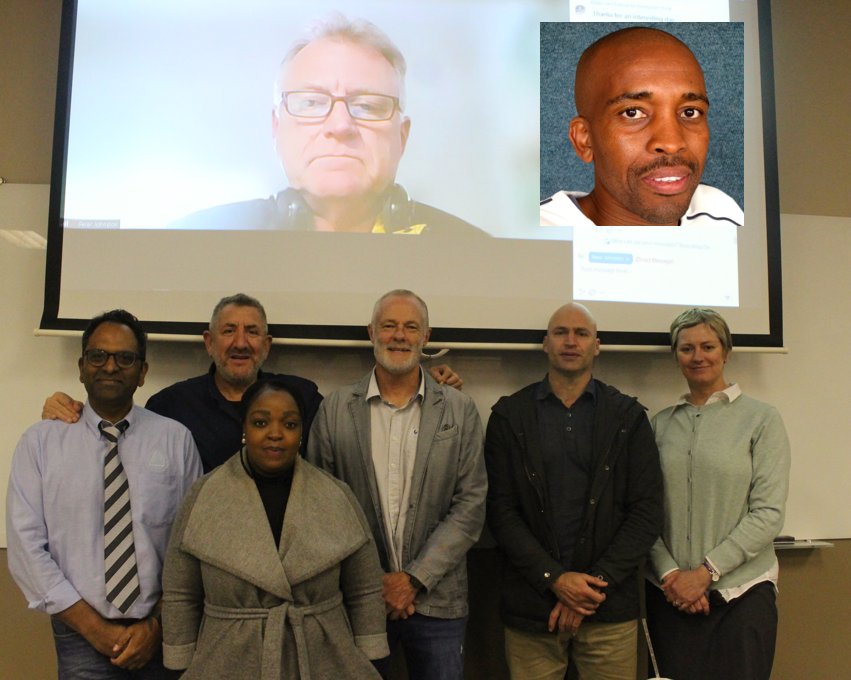 Dr Neville Sweijd and Dechlan Pillay. Virtual participants are Dr Peter Johnston (left) and Dr Mokhele Moeletsi (insert on the right)