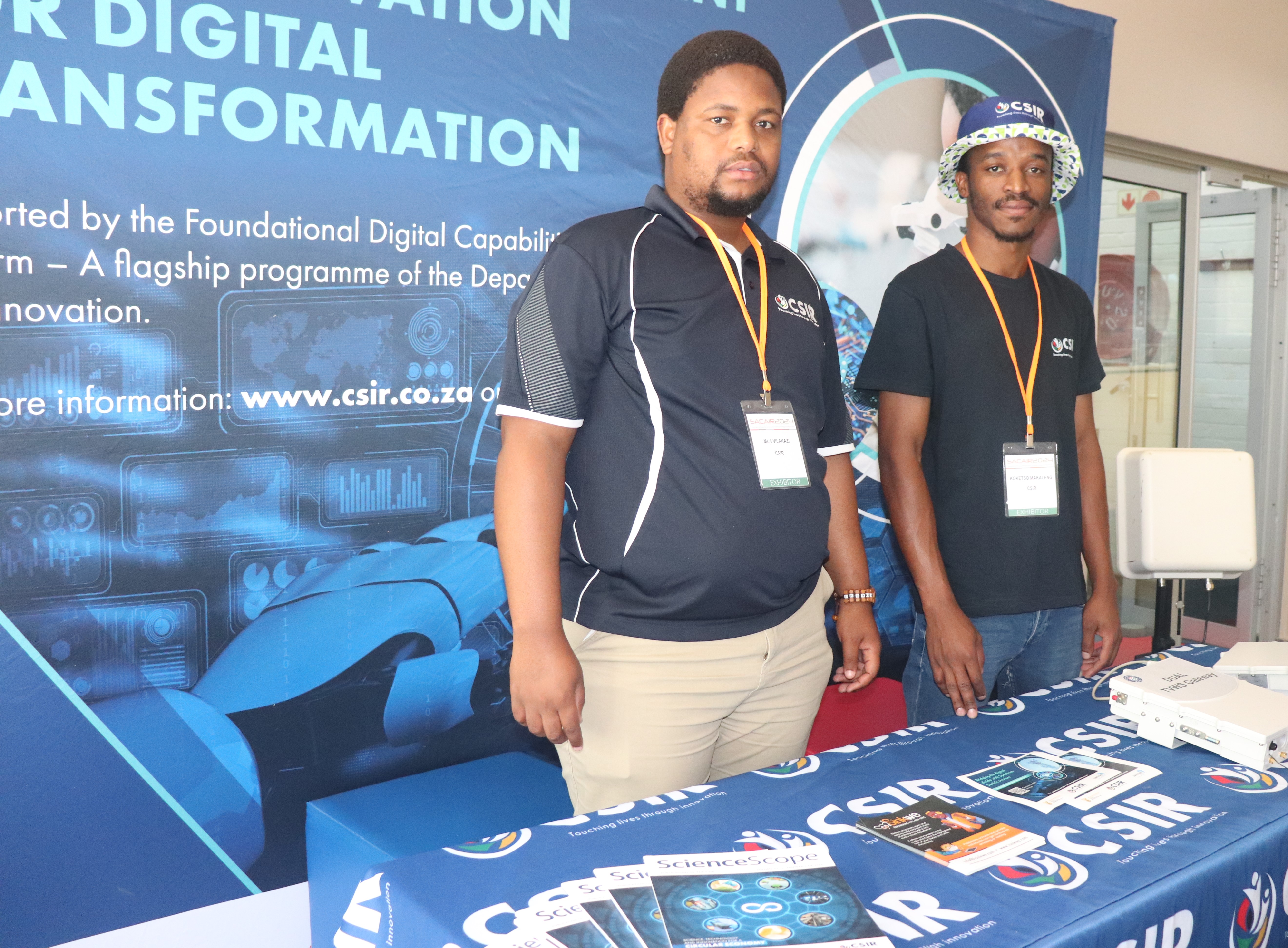 Exhibiting at the CSIR’s stand was researcher from the Network Systems Application (NSA) impact area, Mla Vilakazi, joined by candidate technologist from spectrum access and management innovation, Koketso Makaleng and senior researcher from voice computing, Jaco Badenhorst.