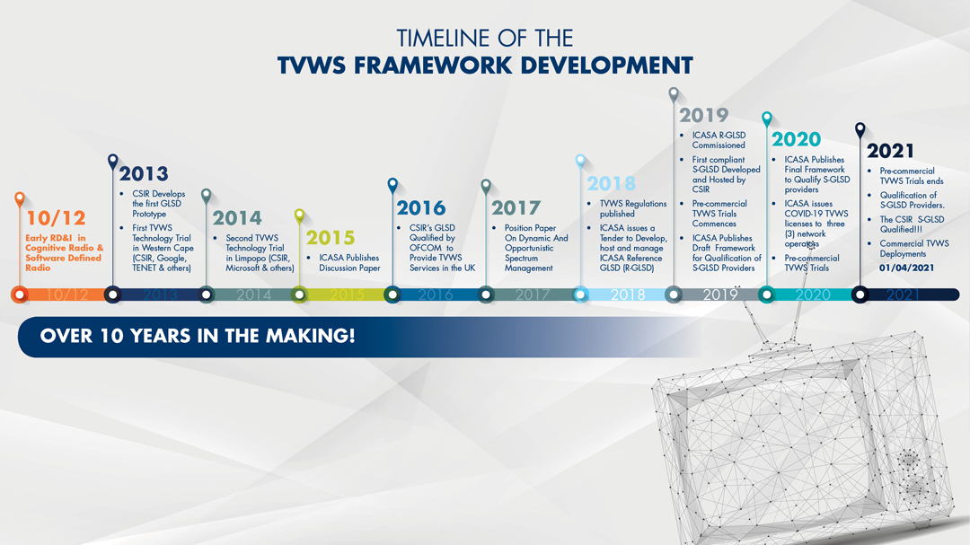 In 2020 at the peak of the Covid-19 pandemic, the CSIR partnered with the Technology Innovation Agency (TIA) and ICASA, to enable local internet service providers to deploy affordable TVWS broadband networks, enabled by the CSIR’s S-GLSD platform.