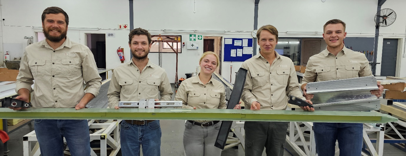 The Jonker Sailplanes JS5 open-class glider project is driven by a team of five newly graduated engineers and represents a major endeavour within OnTrack Technologies. The glider's development aims to push the boundaries of aerodynamics, materials and manufacturing techniques. The involvement of young engineers in this project not only showcases their technical skills but also allows them to gain invaluable hands-on experience in a cutting-edge aerospace venture. The project serves as a platform for these engineers to enhance their knowledge and expertise, establishing a strong foundation for their future careers.