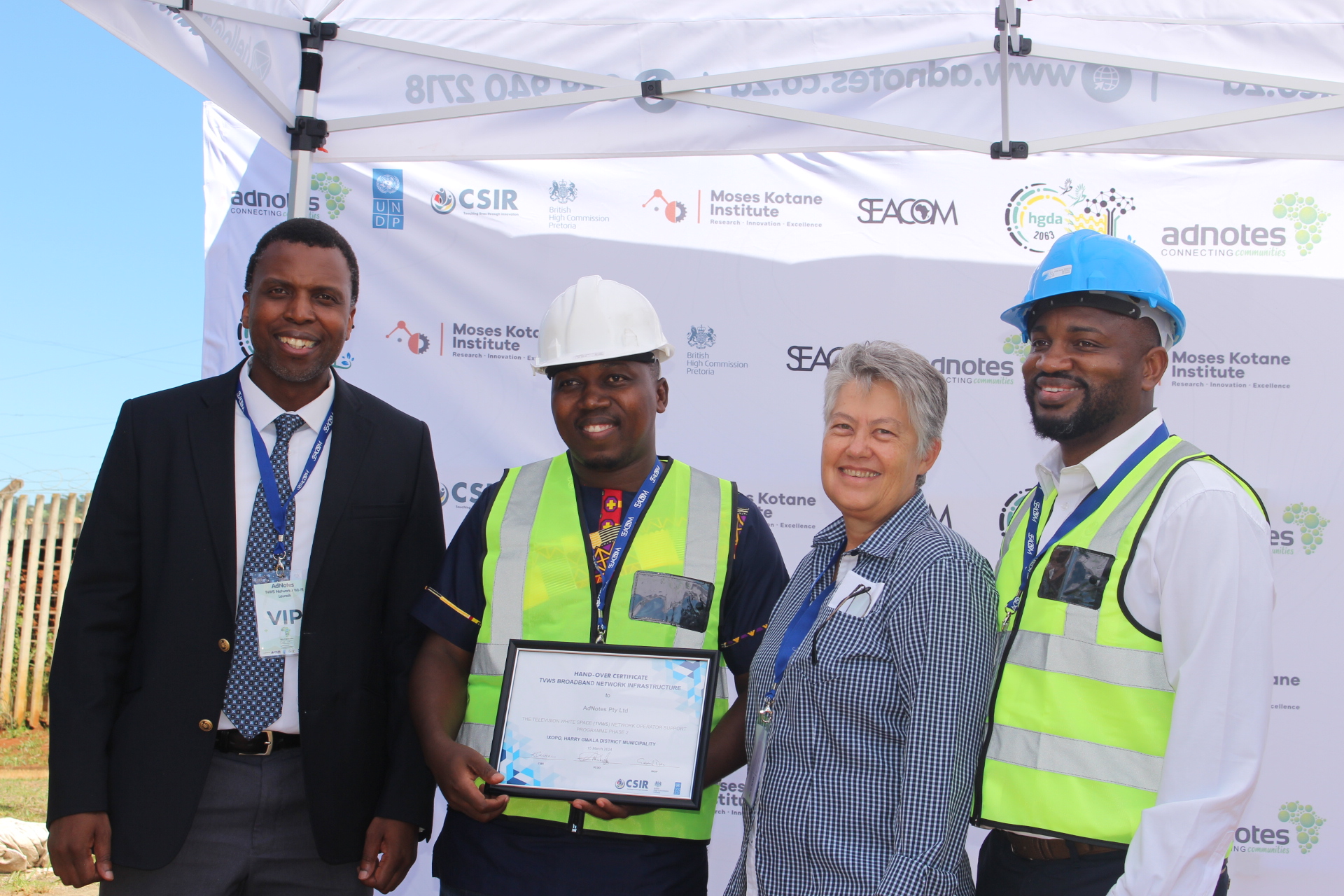 The commissioning ceremony took place at the Harry Gwala Development Agency (HGDA) in iXopo within the Harry Gwala municipality district, where the network TVWS tower is built.