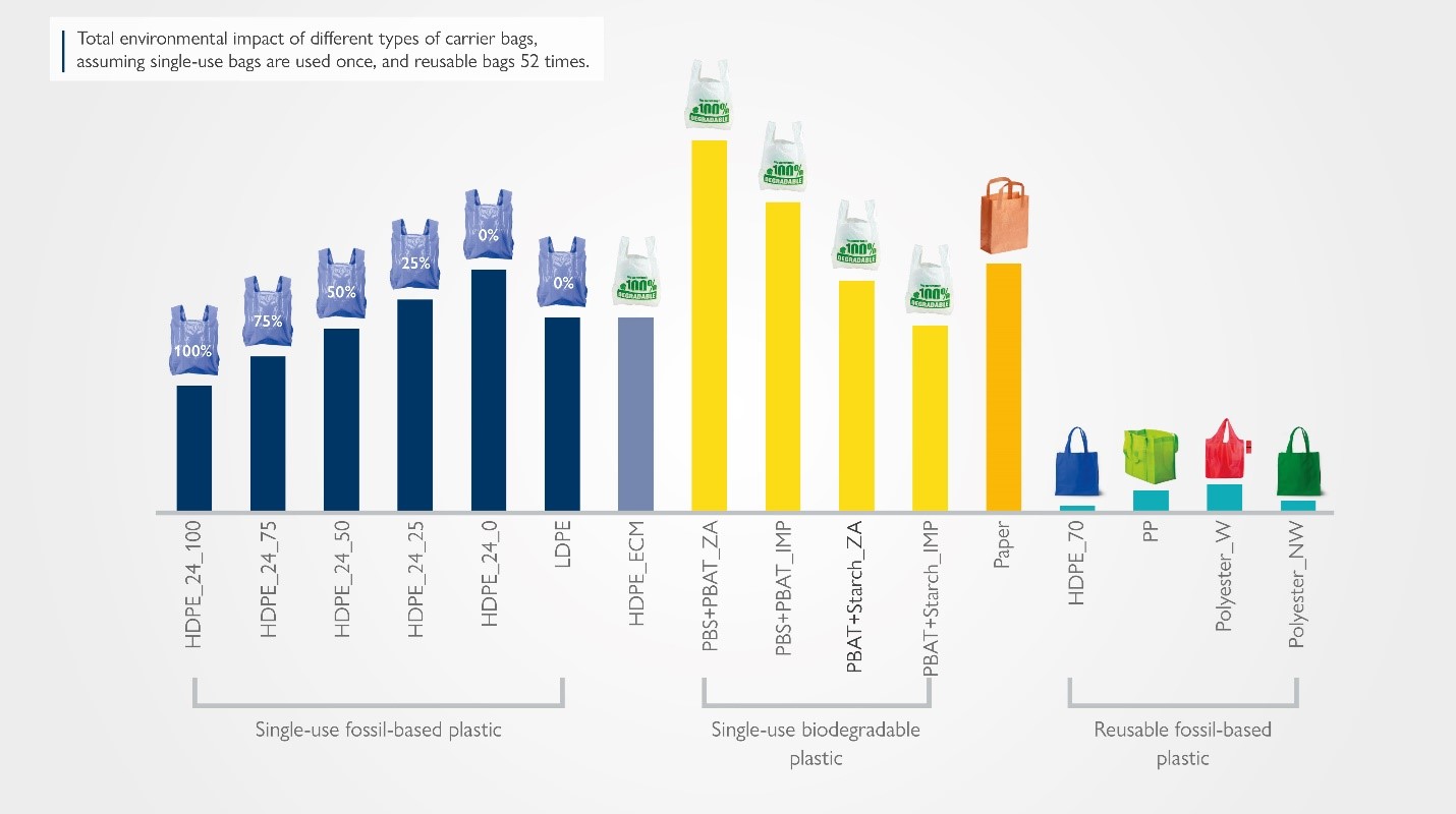 A Life Cycle Sustainability Assessment of alternative options for grocery carrier bags in South Africa was conducted, comparing standard single-use plastic carrier bags with several alternatives, including reusable bags and bags made from different materials, regarding their environmental and socioeconomic performance across the product life cycle.